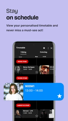 За феновете на фестивалите, Appic предлага несравними инструменти. Разгледайте пълния списък с изпълнители, създайте персонализиран график, за да не пропуснете любимите си групи, и използвайте интерактивната карта на събитието, за да намерите лесно сцени, съоръжения и дори да откриете приятелите си сред тълпата. Бъдете винаги информирани с актуални новини, промени в програмата и специални оферти, доставяни в реално време, за да сте сигурни, че винаги сте една крачка напред.