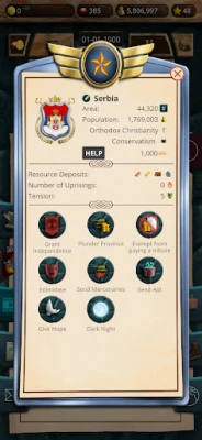 Вашата мисия започва със създаването на несъкрушима армия и модерен флот, способни да защитават границите и да проектират влияние отвъд тях. Водете мъдри войни срещу съперничещи държави, потушавайте сепаратистки бунтове и елиминирайте пиратски и разбойнически заплахи, за да осигурите стабилността на вашето царство. За да подхранвате военната си машина и да развивате икономиката си, е жизненоважно да придобивате и управлявате стратегически ресурси като петрол, желязо, камъни, олово и каучук.