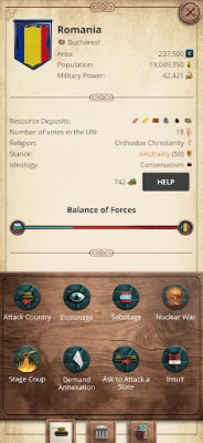 Готови ли сте да поемете кормилото на съдбата на една нация? Съвременна епоха 1 - Симулатор на президент ви кани в свят на безпрецедентна стратегическа дълбочина, където всяко ваше решение оформя бъдещето. Превърнете се в архитект на просперираща икономика, дипломат от световна класа и върховен главнокомандващ на мощна армия. Тази епична симулация ви предизвиква да надхитрите съперниците си, да завладявате територии и да изградите непоклатима империя, защитавайки лидерската си позиция до окончателната победа. Пригответе се за комплексно пътешествие, което съчетава изграждане на държава, военни конфликти и сложна политика.