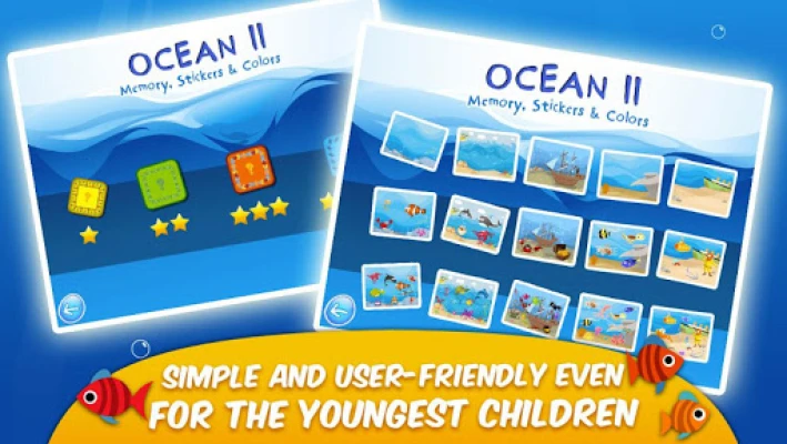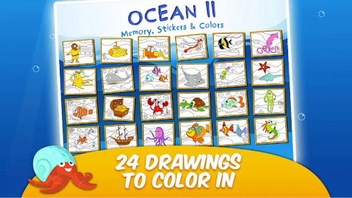 Потопете се в дълбините на образователното приключение с "Oceano II Matching, Stickers and Colors" от MagisterApp – приложение, създадено с внимание към всеки детайл и изцяло фокусирано върху нуждите на най-малките откриватели. Разработено специално за деца над 3 години, то предлага интуитивен и завладяващ свят, където ученето се превръща в чиста радост. Благодарение на изображенията с изключително висока резолюция, които разгръщат потенциала на HD екраните, и хармоничните звукови ефекти, всяко взаимодействие е визуално стимулиращо и приятно за слуха. Приложението е съвместимо с всички устройства, гарантирайки достъп до качествено съдържание, което непрекъснато се обогатява с нови герои и нива.