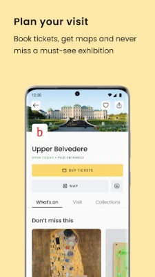 Планирането на следващото ви културно приключение никога не е било по-лесно. Със **Smartify** можете да резервирате билети, да разгледате интерактивни карти и да се уверите, че няма да пропуснете нито една задължителна изложба. Създайте своя лична колекция от любими произведения на изкуството и получавайте персонализирани препоръки за нови открития. Разгледайте ексклузивни арт подаръци, книги и репродукции от музейни магазини по света, доставяйки частица от магията на изкуството директно до вас.