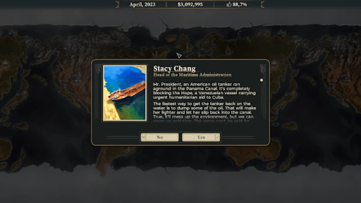Потопете се в свят, където политиката среща сенчестия подземен свят, а всеки ход е стратегически шедьовър. Пригответе се да преобразите президентството, управлявайки нацията не просто като държавен глава, а като безмилостен стратег, който познава изкуството на влиянието отвъд всякакви протоколи. В тази уникална симулация от www.handy-games.com GmbH ще балансирате между публичните си задължения и скритите операции, изправяйки се както срещу стари врагове, така и срещу лъскави нови предизвикателства, които съпътстват върховната власт. Подгответе се за епични сблъсъци с политически опоненти, медии, институции и дори чуждестранни лидери, докато оформяте своята собствена дефиниция за държавно управление.