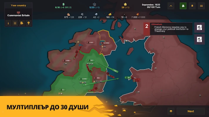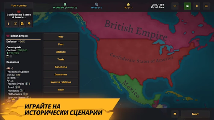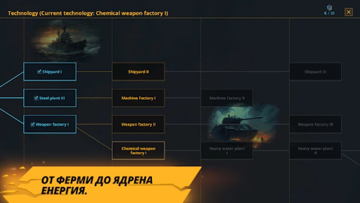 Когато думите не са достатъчни, разгърнете пълната мощ на вашата военна машина. От безмилостна пехота до опустошителни ядрени оръжия, унищожете враговете си по суша, въздух и вода. Изградете могъщ флот от крайцери, бойни кораби и самолетоносачи, за да властвате над седемте морета. Защитете териториите си с непоклатими крепости и модерни отбранителни системи. Напредвайте през технологичното дърво, за да отключите голямо разнообразие от сгради и структури, които ще укрепят вашата империя, или поемете риска да използвате химическо и ядрено оръжие за безкомпромисна доминация.